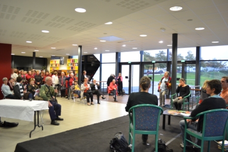 D'ar Sul beure, a-raok an digor-kalon hag ar pred evit mignoned Al Liamm hag al lennegezh, e oa bet ur c'hendiviz er sal sinema. Pinvidik ha talvoudus eo bet an eskemmoù. Un tregont den bennak a oa er sal.